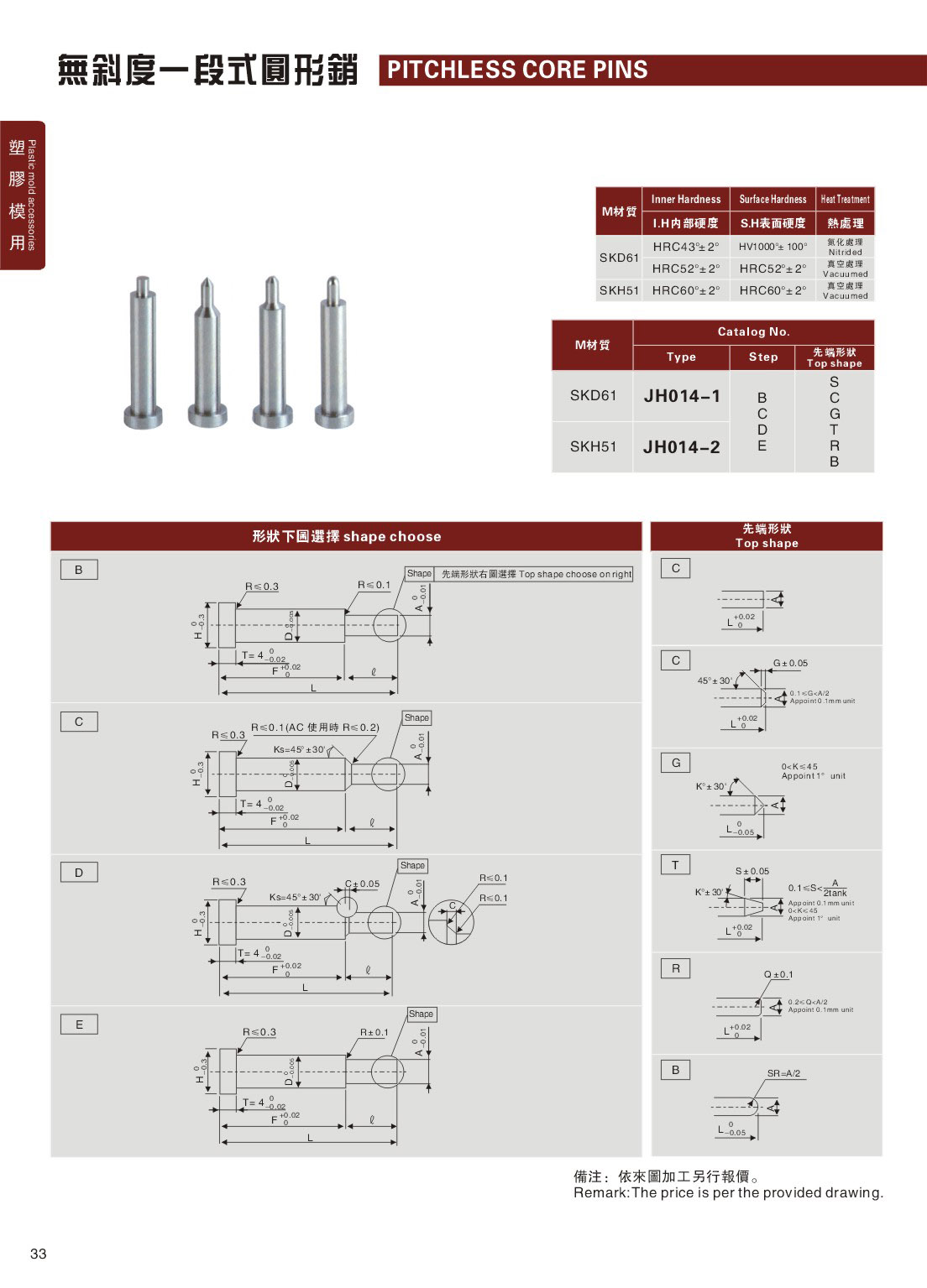 訂購:33-無斜度一段式圓形銷 JH014