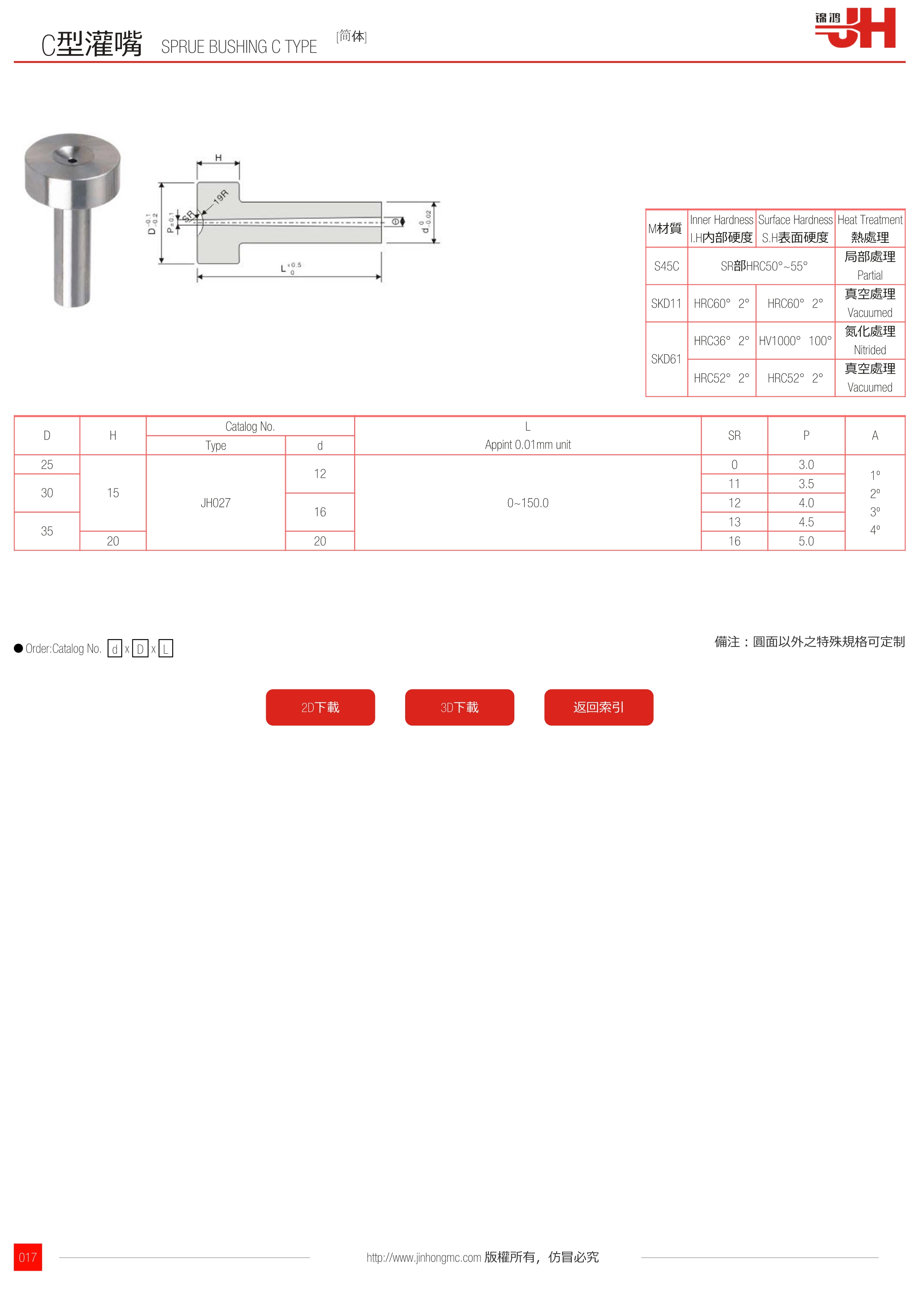 | D | H | Catalog No. | L Appint 0.01mm unit | SR | P | A | |