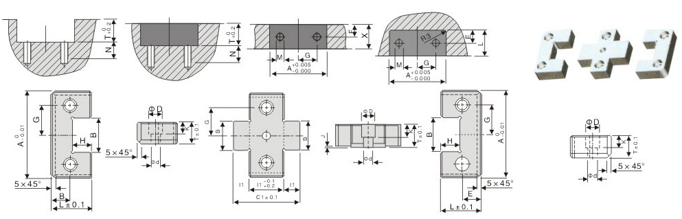 | W +.0000 -.0004 | T +.000 -.002 | X +.000 -.005 | A +.000 -.002 | C ±0.1 | D .0001/.0002 | R | S ±0.1 | P +.001 -.000 | 內(nèi)六角螺場絲 internal hexagon screw S.H.C.S | |