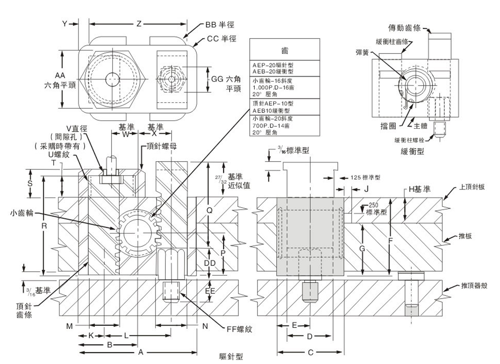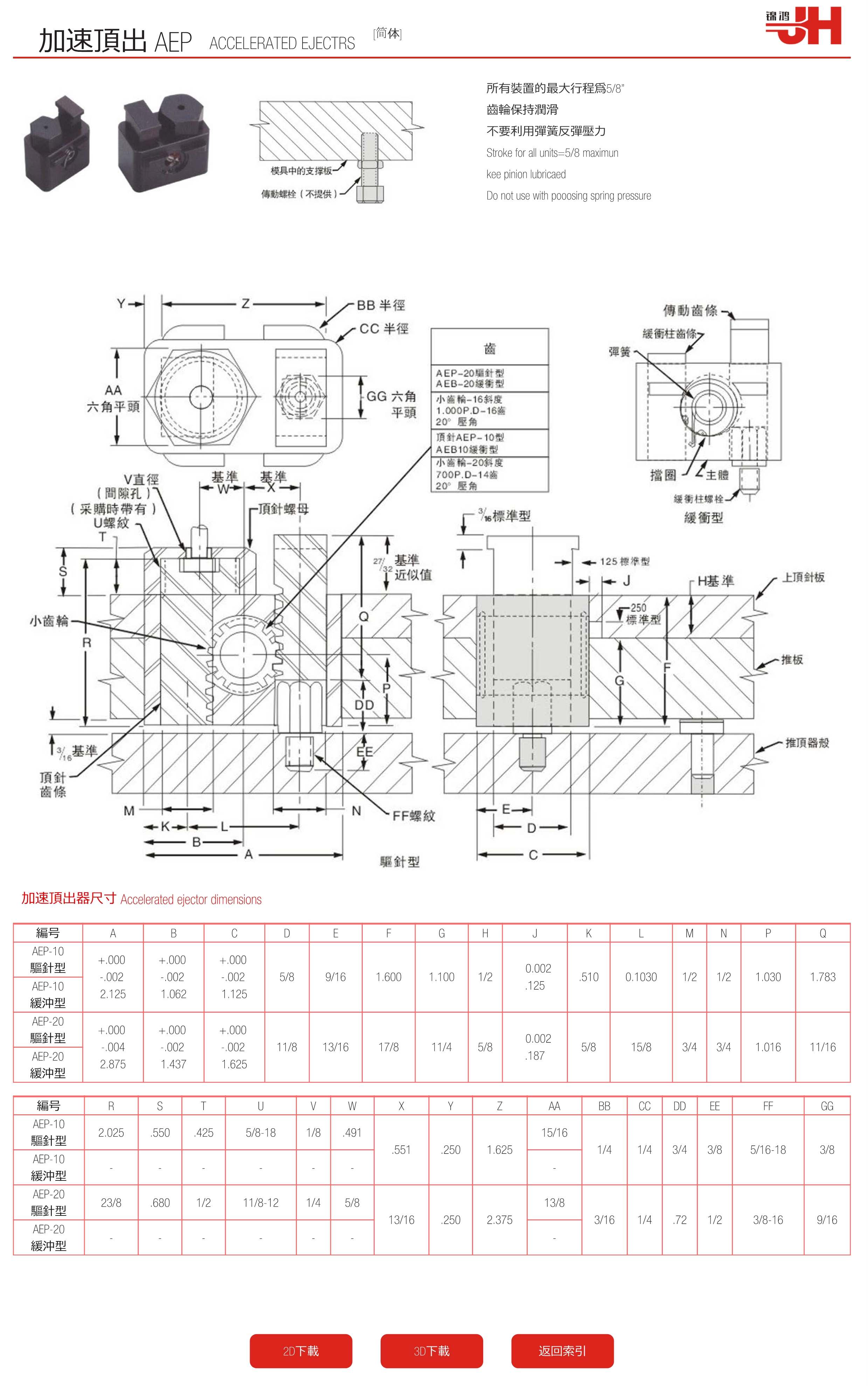 | AEP-20 驅(qū)針型 | +.000 -.004 2.875 | +.000 -.002 1.437 | +.000 -.002 1.625 | 11/8 | 13/16 | 17/8 | 11/4 | 5/8 | ±0.002 .187 | 5/8 | 15/8 | 3/4 | 3/4 | 1.016 | 11/16 |