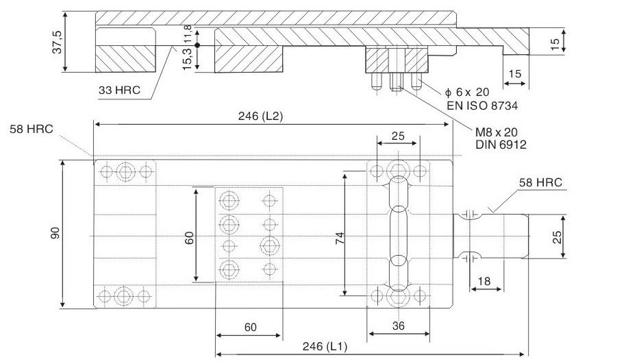 ※ Precautions: lt is required to calculate the same stroke for symmetrical installation during die processing. Otherwise, it will cause unbalance force of single set of modelocking buckle and breakage of component.