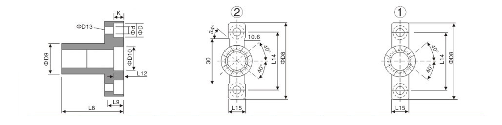 | Type | 型號(hào) (+DKL62) | 尺寸 | D8 | D9 | D10 | L8 | L9 | L12 | L14 | L15 | R1 | ¢D13 | |||