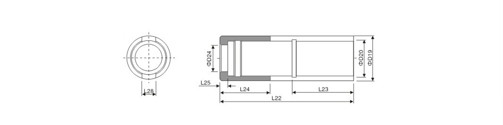 | 型號(hào) | 尺寸 | 行程范圍 | L22 | D19 | D20 | D24 | L23 | L24 | L25 | L28 |