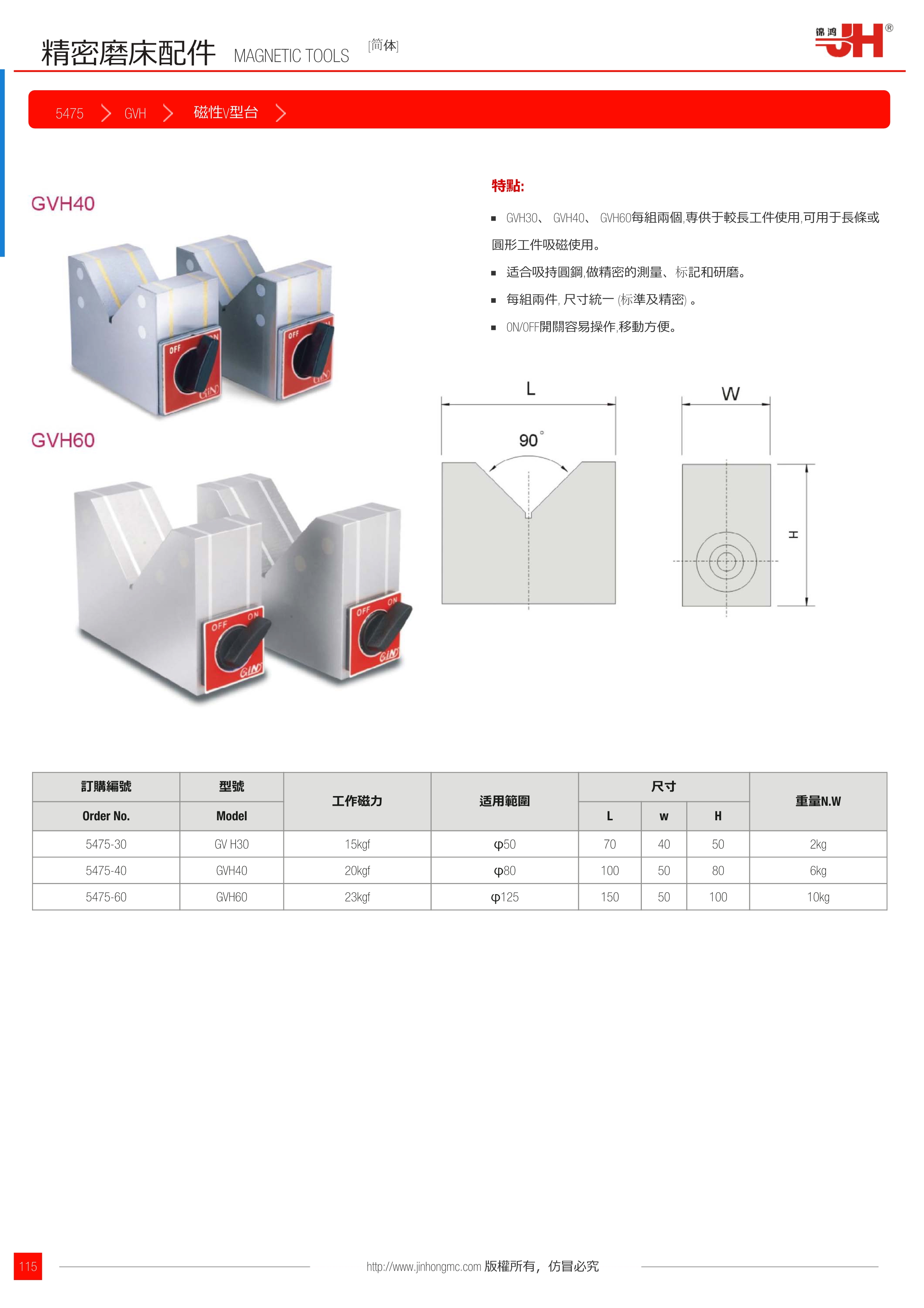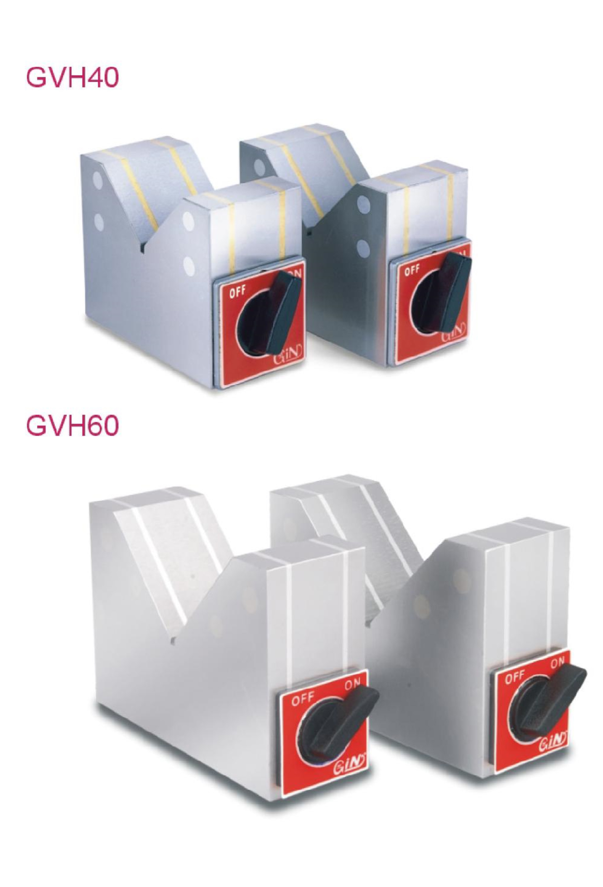 GVH30、 GVH40、 GVH60每組兩個,専供于較長工件使用,可用于長條或圓形工件吸磁使用。