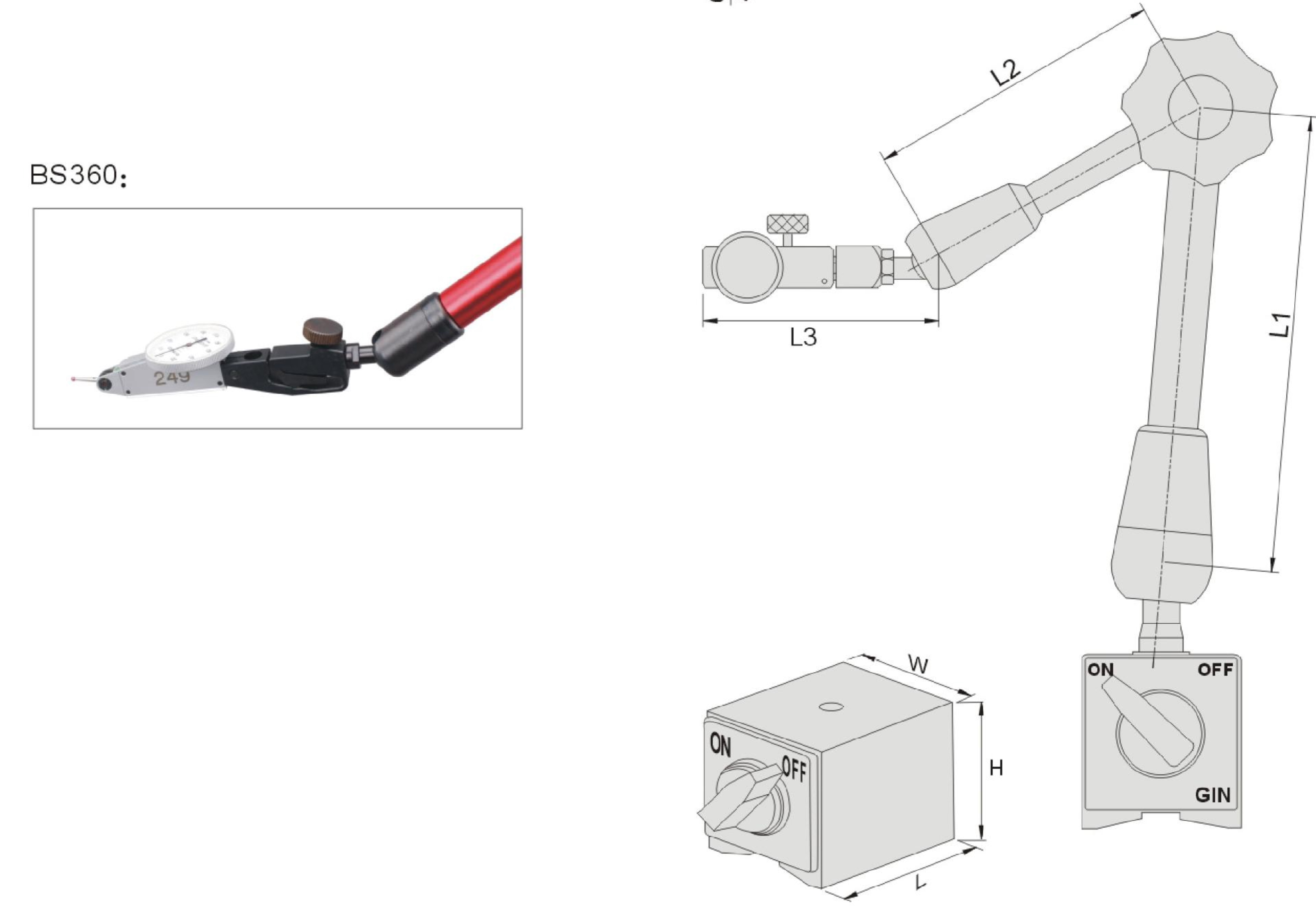 | 訂購編號 | 型號 | 杠桿規(guī)格 | L3 | 磁性座規(guī)相 | 吸力(N) | 重量 | |||
