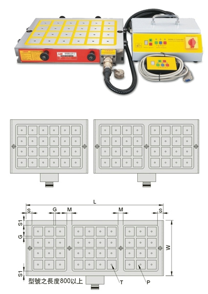 永久磁盤電控式結構設計;2秒鍾充、退磁,使 用時不需持續(xù)供,無溫升,可長時間使用,不會因 溫度升高導致工件變形影響精度。