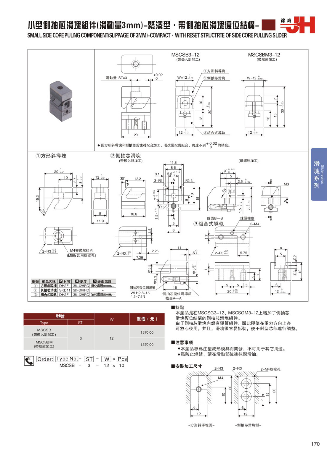 訂購:170-小型側(cè)抽芯滑塊組件(滑動量3mm)-緊湊型˙帶側(cè)抽芯滑塊復(fù)位結(jié)構(gòu) MSCSB