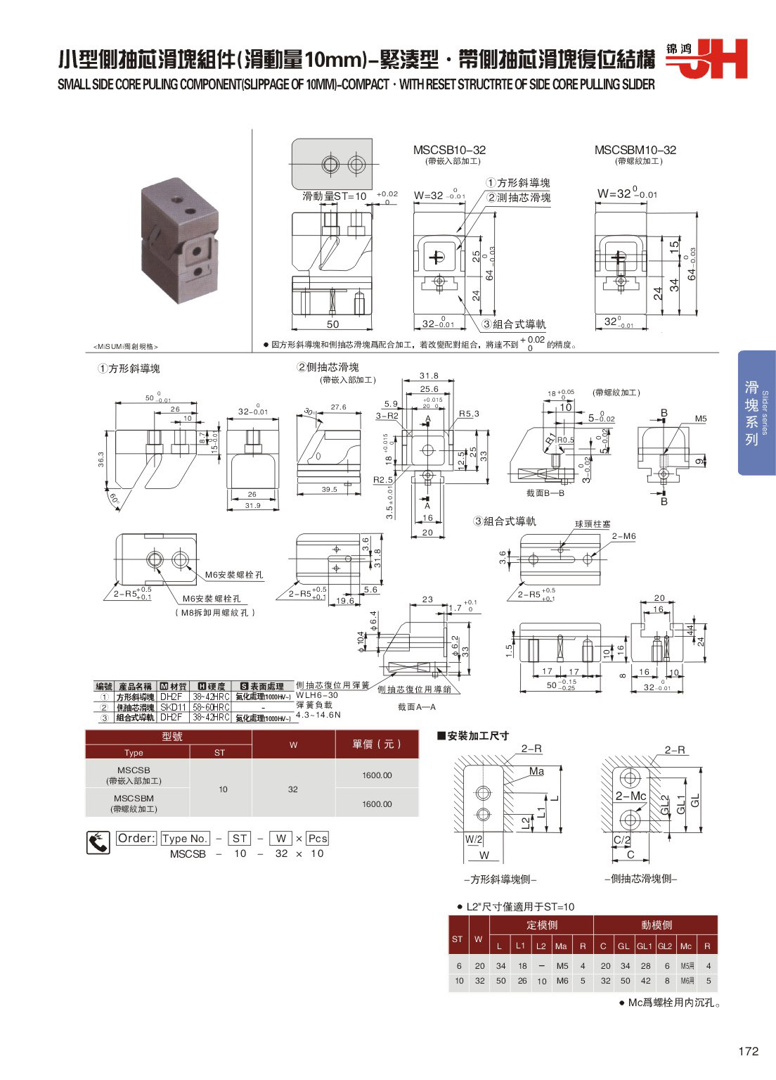 訂購:172-小型側(cè)抽芯滑塊組件(滑動量10mm)-緊湊型˙帶側(cè)抽芯滑塊復(fù)位結(jié)構(gòu) MSCSB