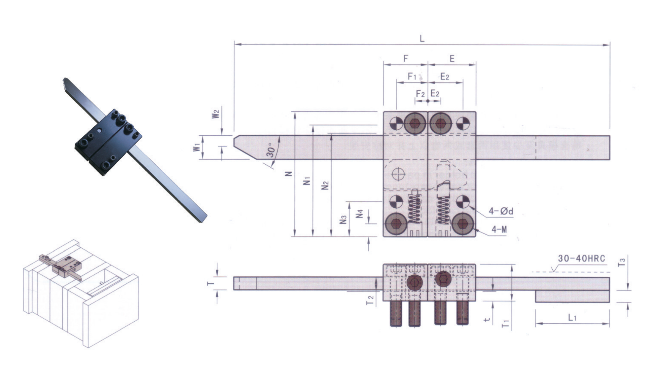 | Code | T | T1 | T2 | T3 | W1 | W2 | L | L1 | 安裝螺絲 | 定位銷 |