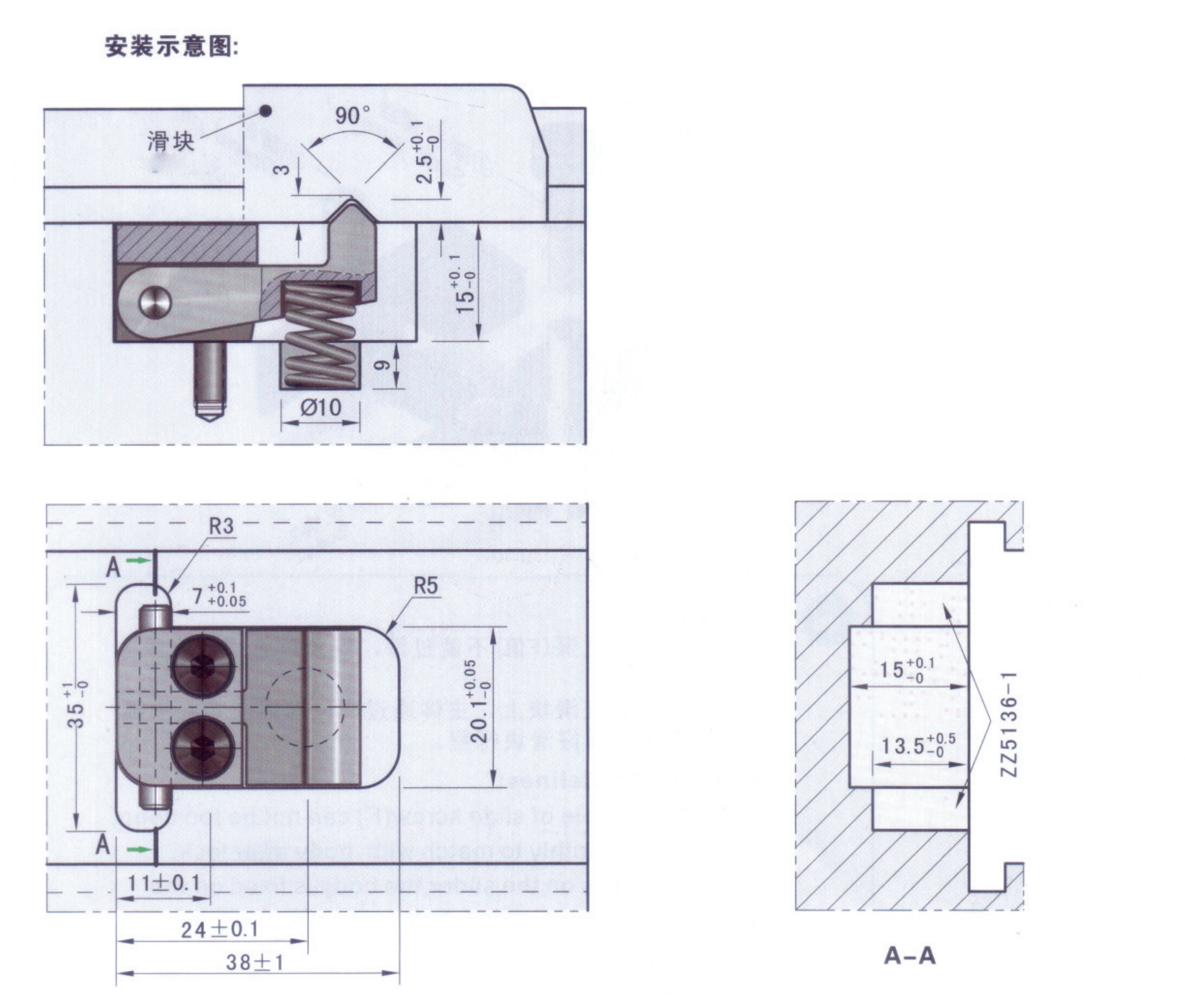 需自行在滑塊上加工90度“”型槽。