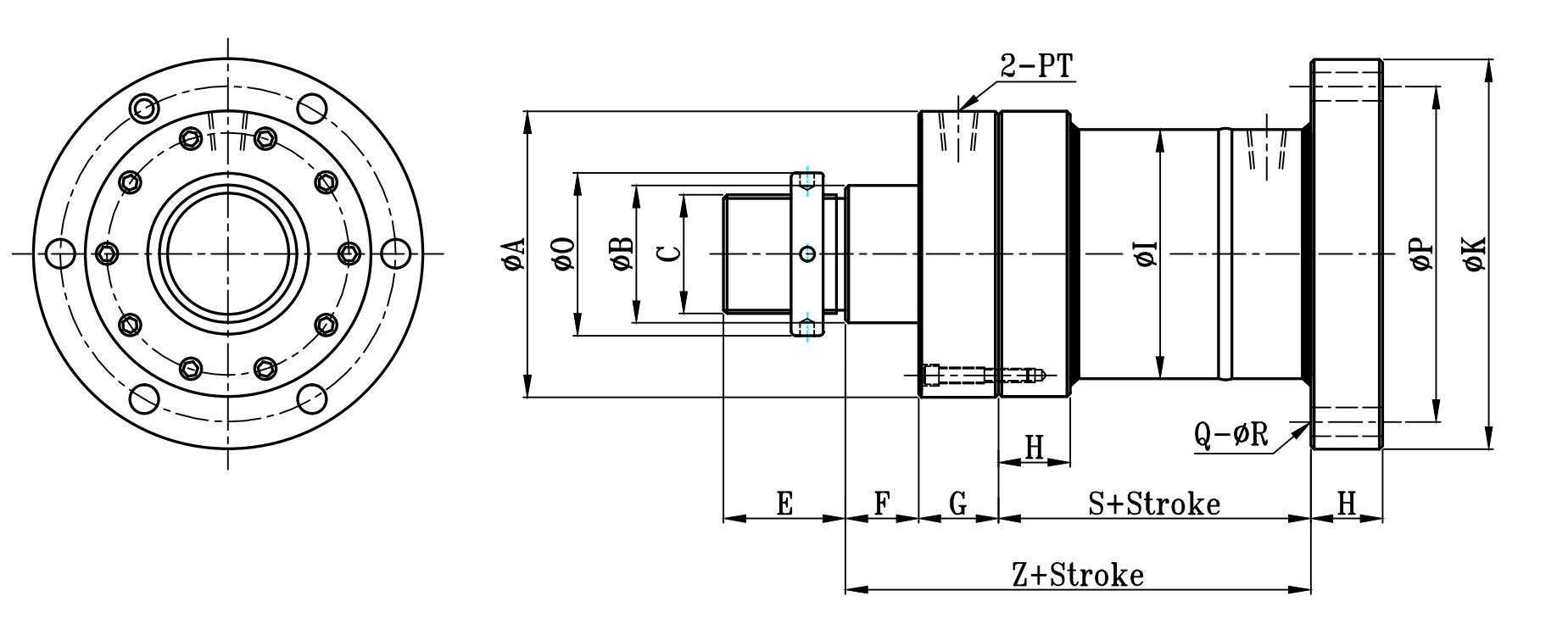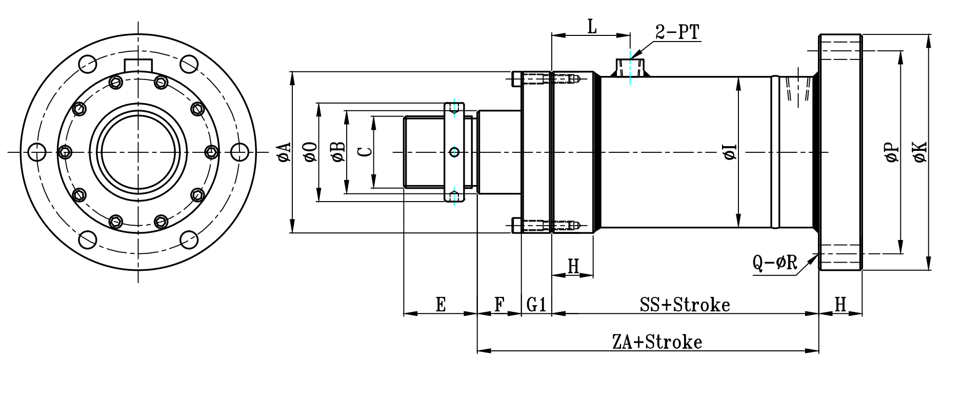 | 缸徑 BORE | ΦA(chǔ) | ΦB | C | L | H | ΦI | ΦK | ΦP | Φ0 | E | F | G | G1 | S | SS | Z | ZA | Q | ΦR | PT |