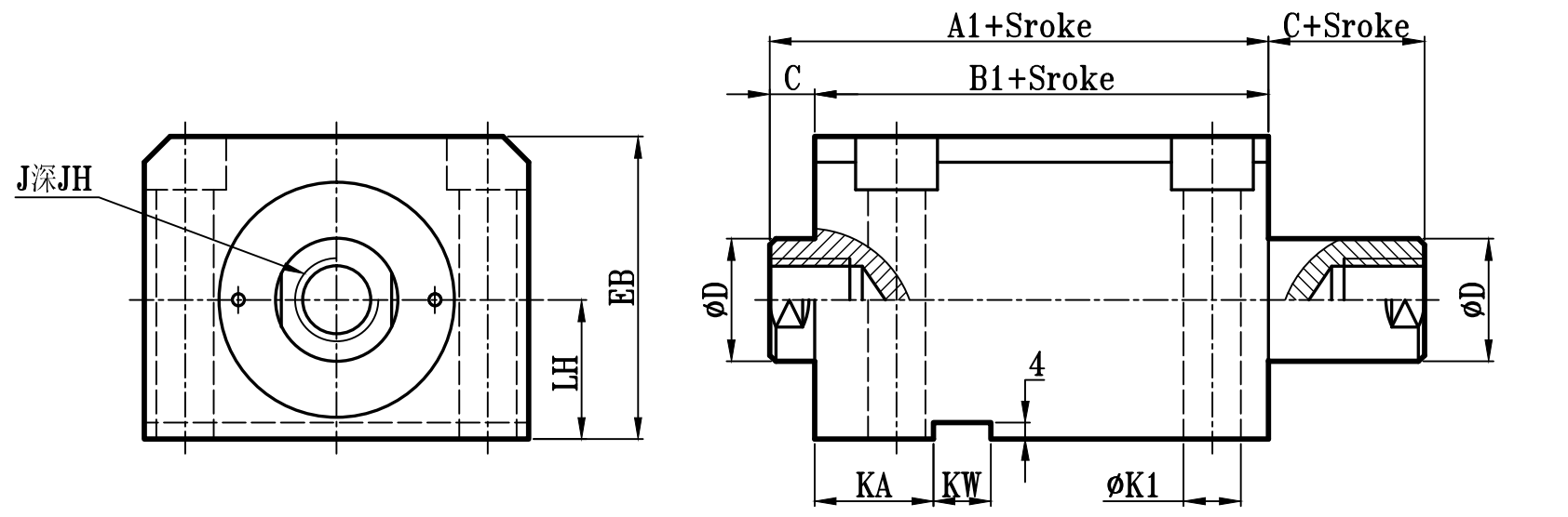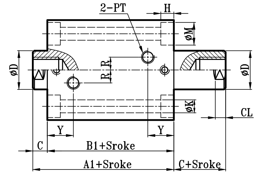 | 缸徑 BORE | A1 | B1 | C | ΦD | EA | FA | EB | LH | Q | FB | ΦK1 | KA | KW | E | F | ΦK | ΦM | H | R | Y | PT | AH | J | JH | O | OL | W | ΦV |