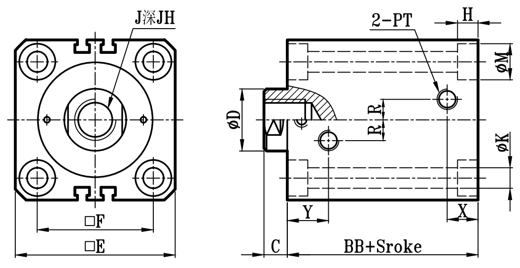 | Φ40 | 69 | 10 | 25 | 80 | 62 | 64 | 29 | 20 | 23 | 66 | 84 | 11 | 28 | 12 | 10 | 70 | 52 | 9 | 14 | 9 | 10 | 12 | 25 | 1/4 | M16xP2.0 | 20 | M22xP1.5 | 30 | 15 | 18 |