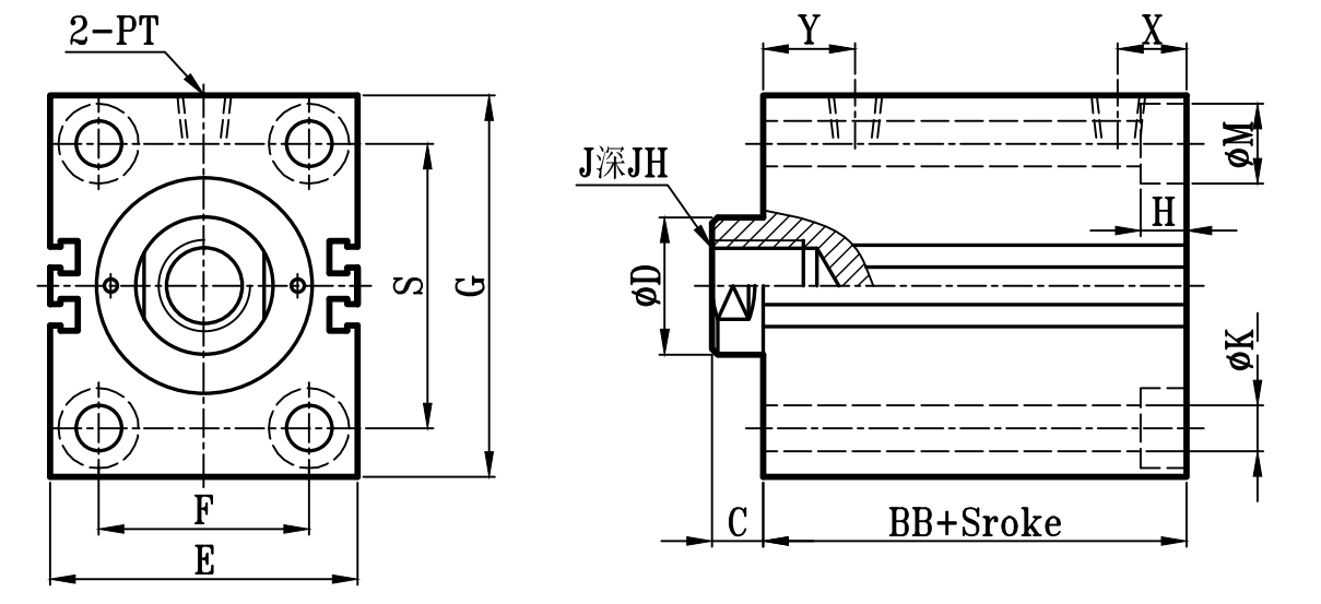 | 缸徑 BORE | BB | C | ΦD | EA | FA | EB | LH | Q | FB | S | G | ΦK1 | KA | KW | R1 | E | F | ΦK | ΦM | H | R | X | Y | PT | J | JH | O | OL | W | ΦV |