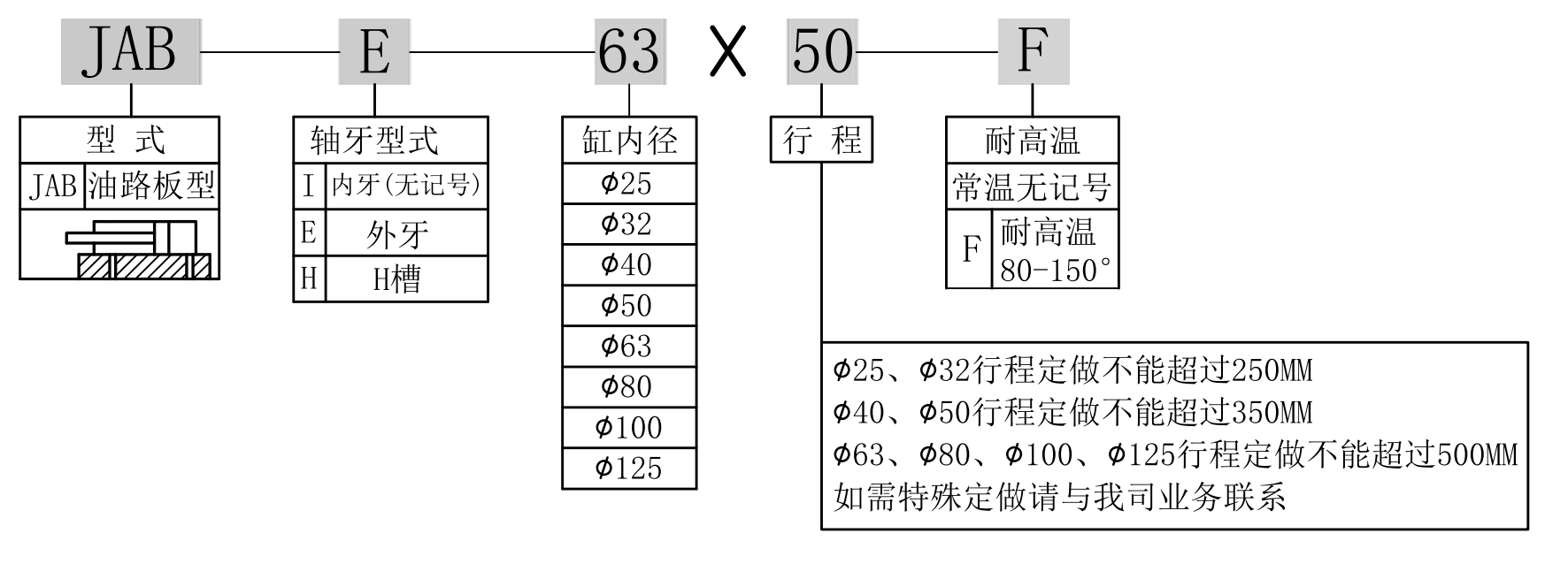 | 油壓缸內(nèi)徑 Bore sizes of cy linder(mm) | Φ25、Φ32、Φ40、Φ50、Φ63、Φ80、Φ100、Φ125 |