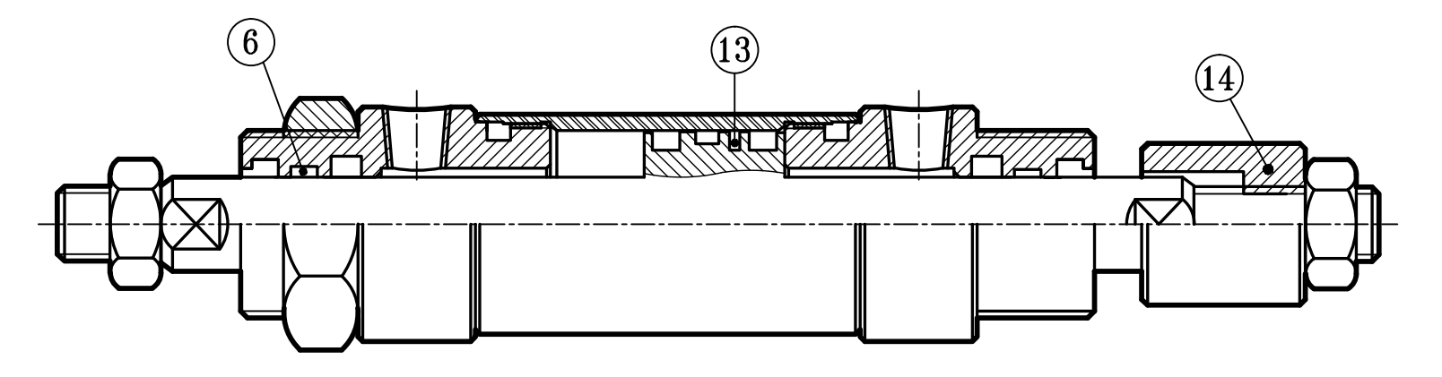 | 4 | 缸封環(huán) Gasket | 2 | 9 | 端蓋螺帽 Cover nut | 2 | 14 | 可調(diào)螺帽 Adjustdle nut | 1 |