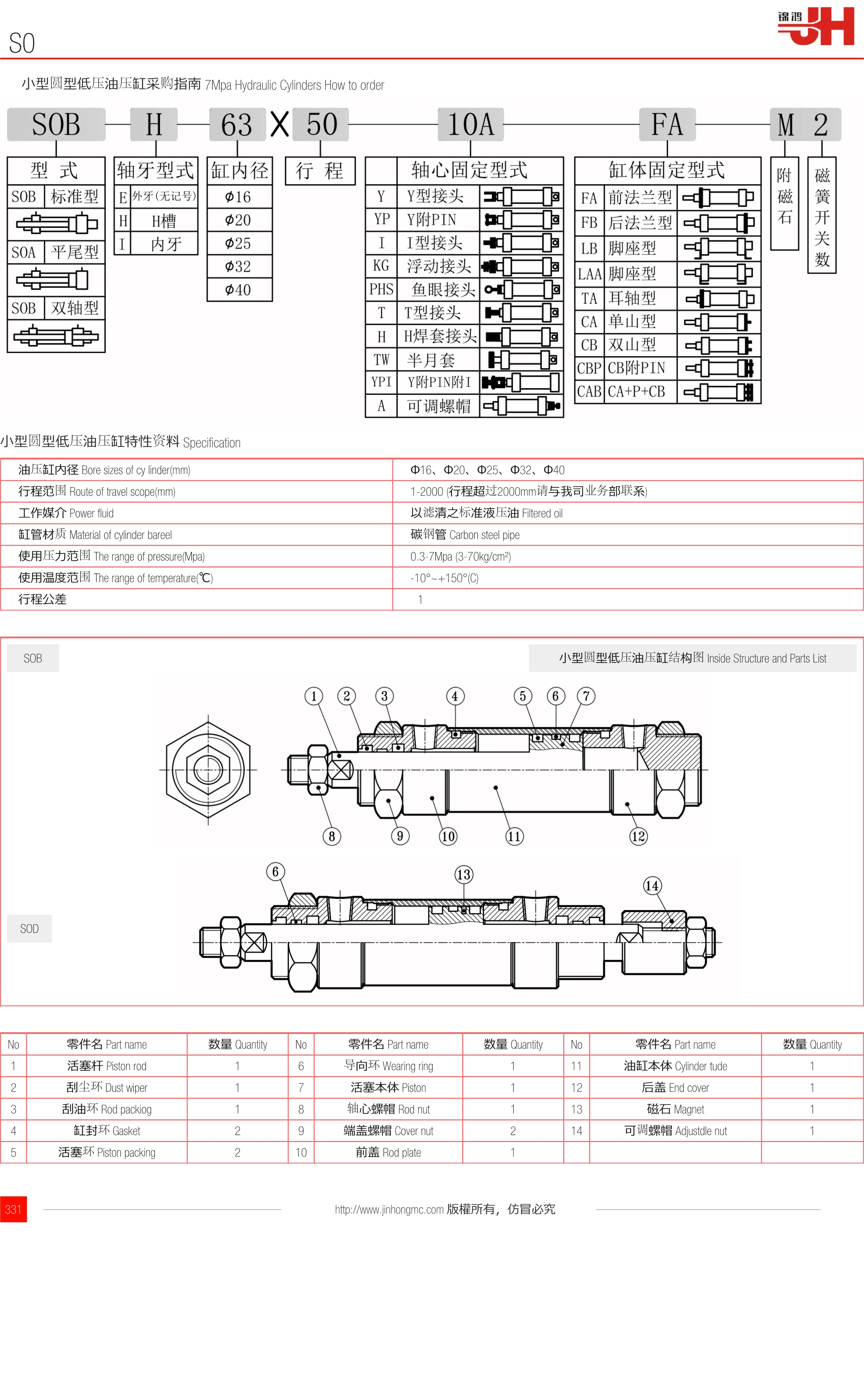 | 油壓缸內(nèi)徑 Bore sizes of cy linder(mm) | Φ16、Φ20、Φ25、Φ32、Φ40 |