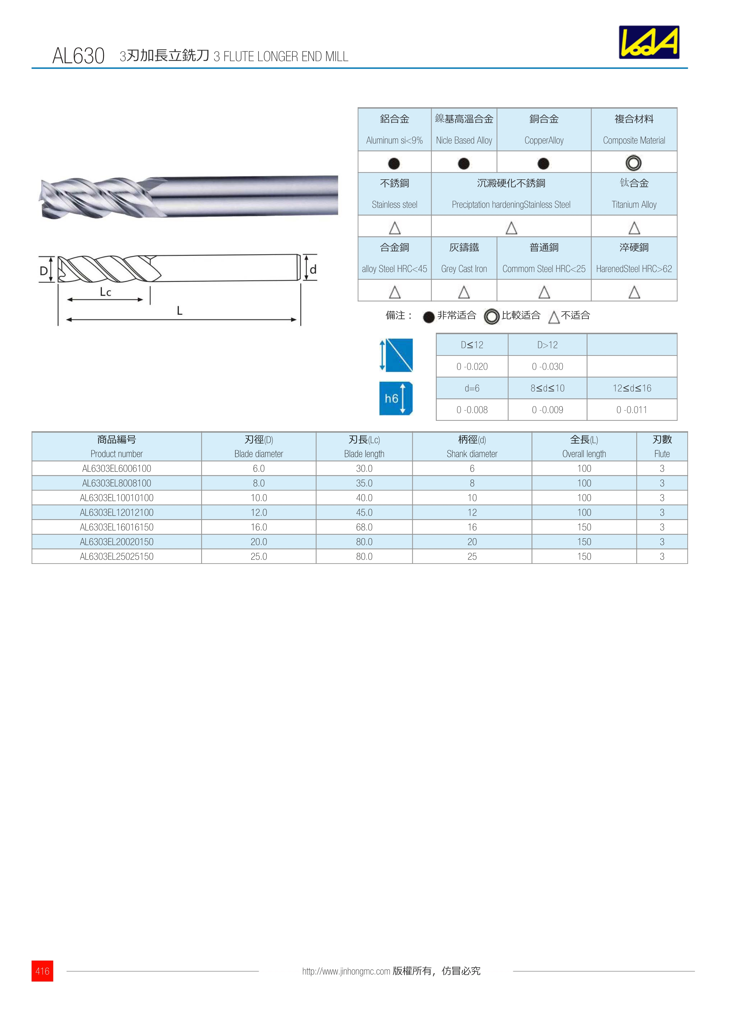 訂購:al630-3 3刃加長立銑刀