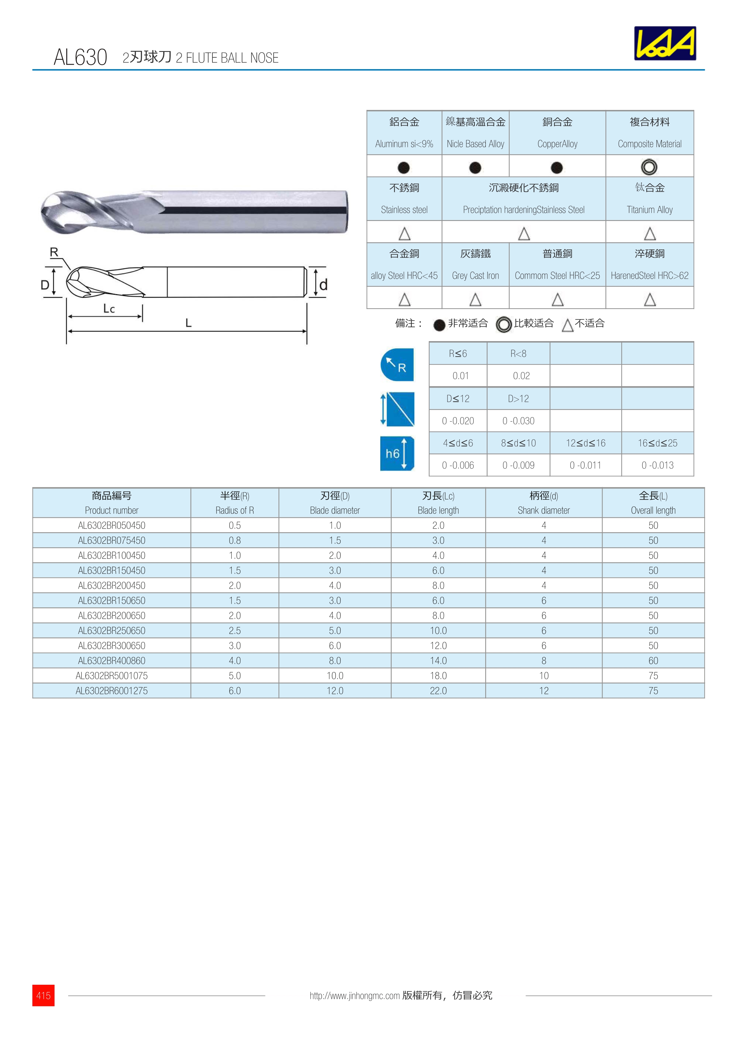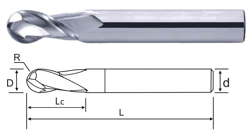 | 商品編號(hào) Product number | 半徑(R) Radius of R | 刃徑(D) Blade diameter | 刃長(Lc) Blade length | 柄徑(d) Shank diameter | 全長(L) Overall length |
