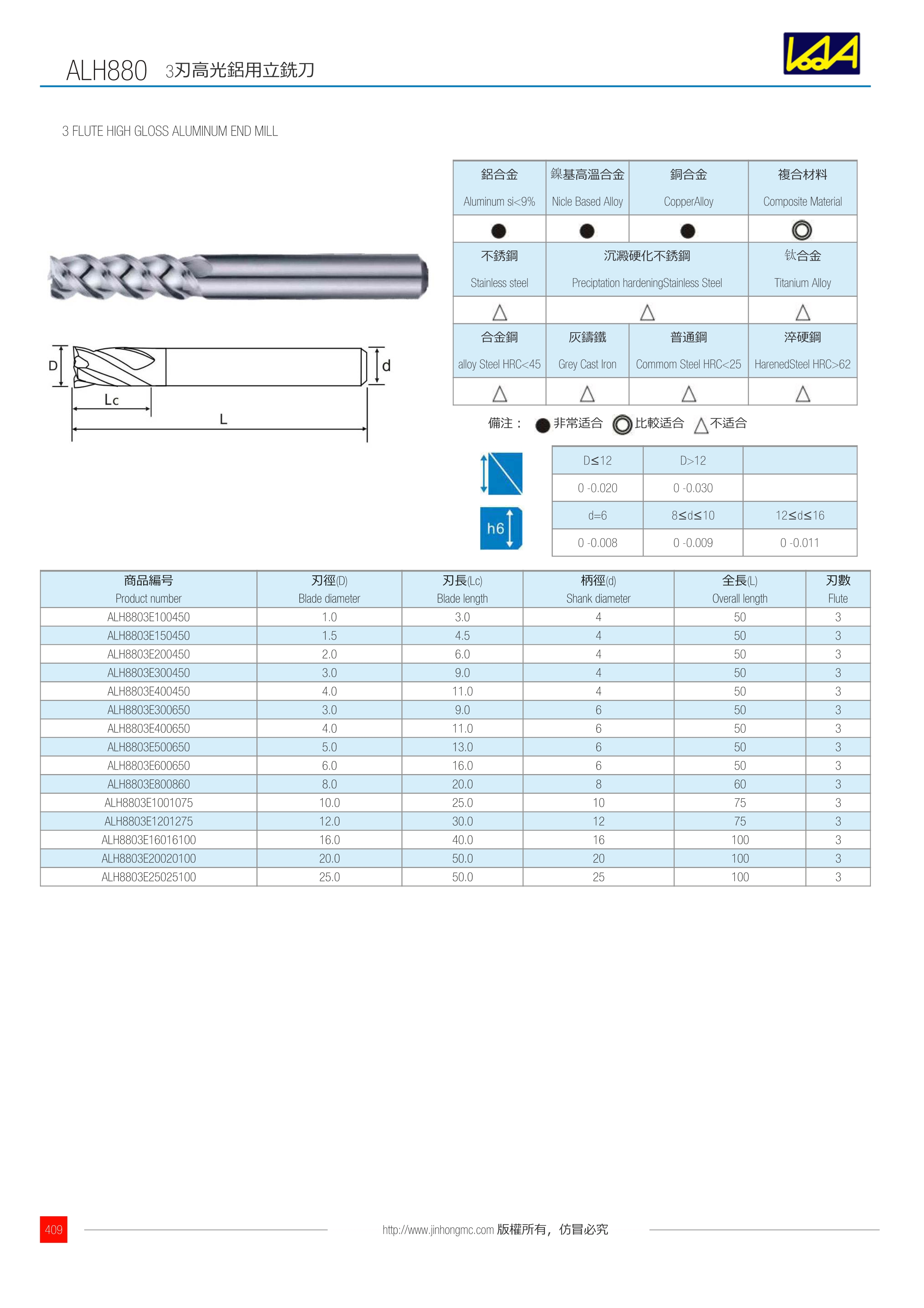 | 商品編號(hào) Product number | 刃徑(D) Blade diameter | 刃長(Lc) Blade length | 柄徑(d) Shank diameter | 全長(L) Overall length | 刃數(shù) Flute |