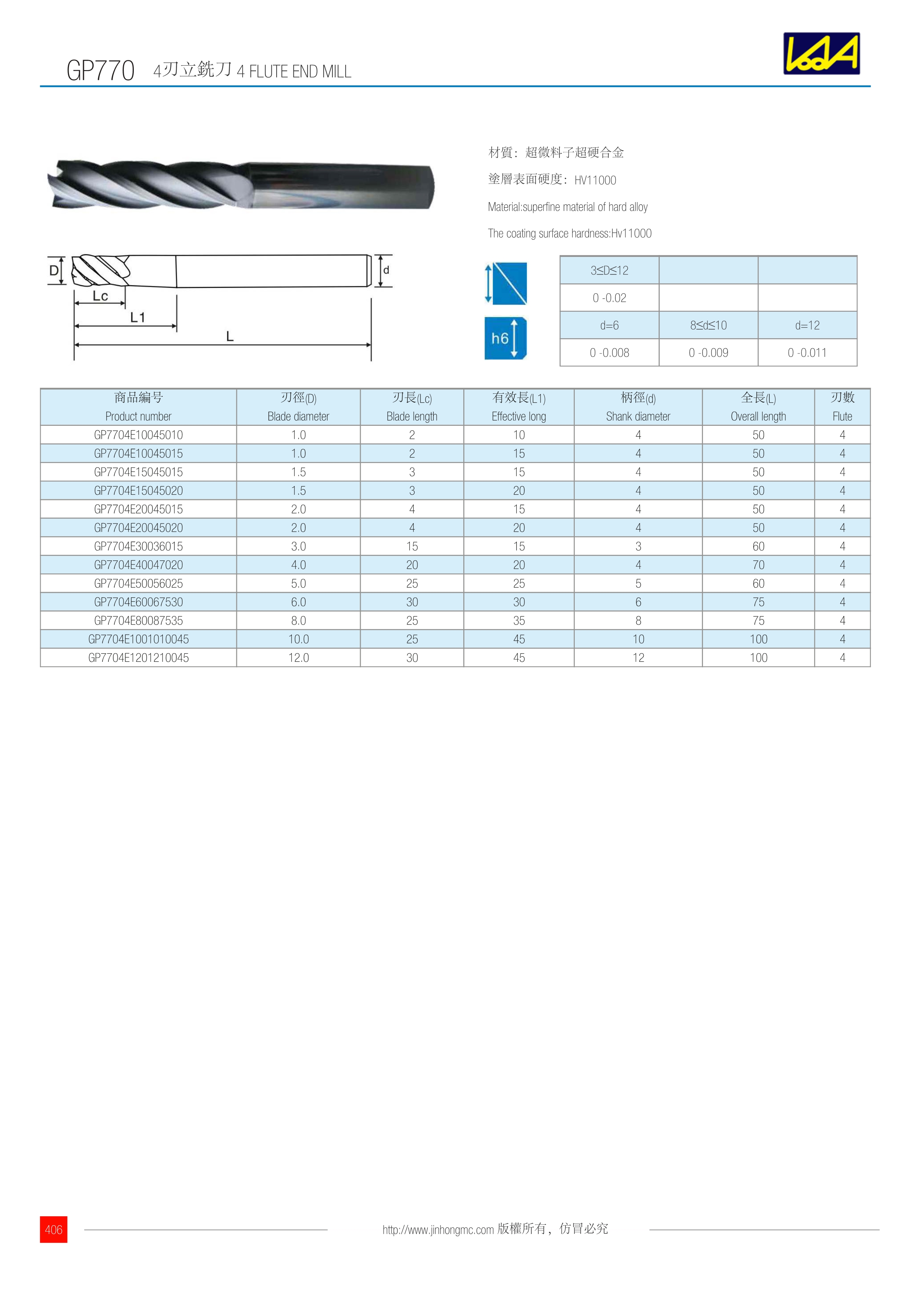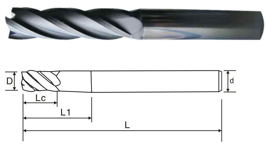 | 商品編號 Product number | 刃徑(D) Blade diameter | 刃長(Lc) Blade length | 有效長(L1) Effective long | 柄徑(d) Shank diameter | 全長(L) Overall length | 刃數(shù) Flute |
