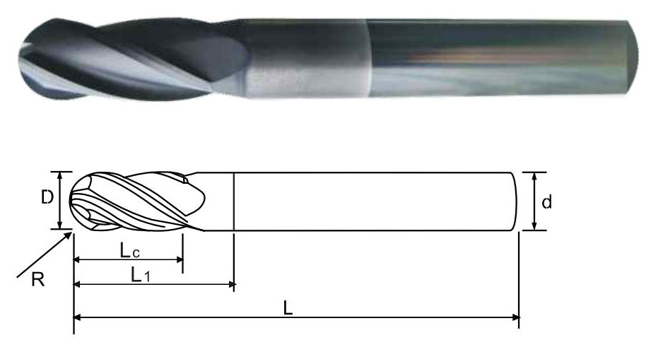 | 商品編號 Product number | 半徑(R) Radius of R | 刃徑(D) Blade diameter | 刃長(Lc) Blade length | 有效長(L1) Effective long | 柄徑(d) Shank diameter | 全長(L) Overall length | 刃數(shù) Flute |