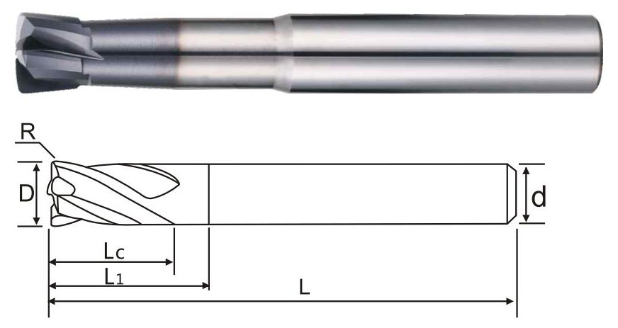 | 商品編號(hào) Product number | 刃徑(D) Blade diameter | R角 R angle | 刃長(zhǎng)(Lc) Blade length | 有效長(zhǎng)(L1) Effective long | 柄徑(d) Shank diameter | 全長(zhǎng)(L) Overall length | 刃數(shù) Flute |
