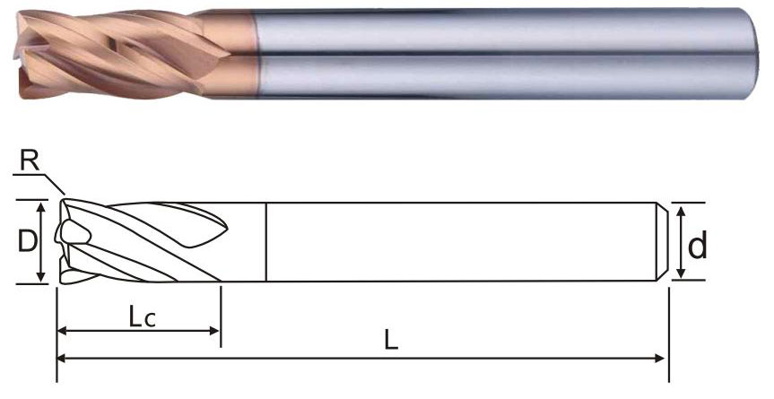 | 商品編號(hào) Product number | 刃徑(D) Blade diameter | R角 R angle | 刃長(zhǎng)(Lc) Blade length | 柄徑(d) Shank diameter | 全長(zhǎng)(L) Overall length | 刃數(shù) Flute |