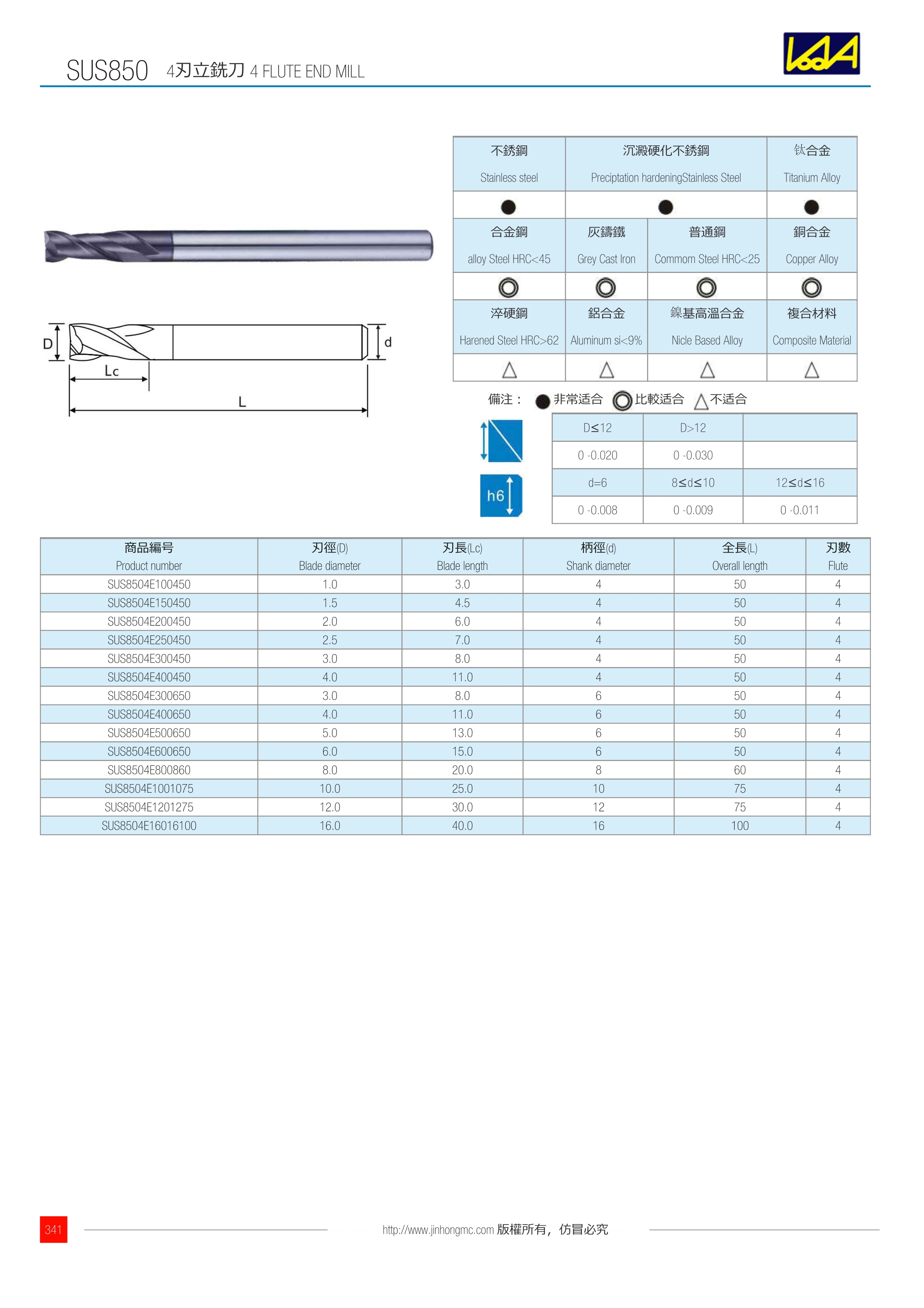 | 商品編號(hào) Product number | 刃徑(D) Blade diameter | 刃長(zhǎng)(Lc) Blade length | 柄徑(d) Shank diameter | 全長(zhǎng)(L) Overall length | 刃數(shù) Flute |
