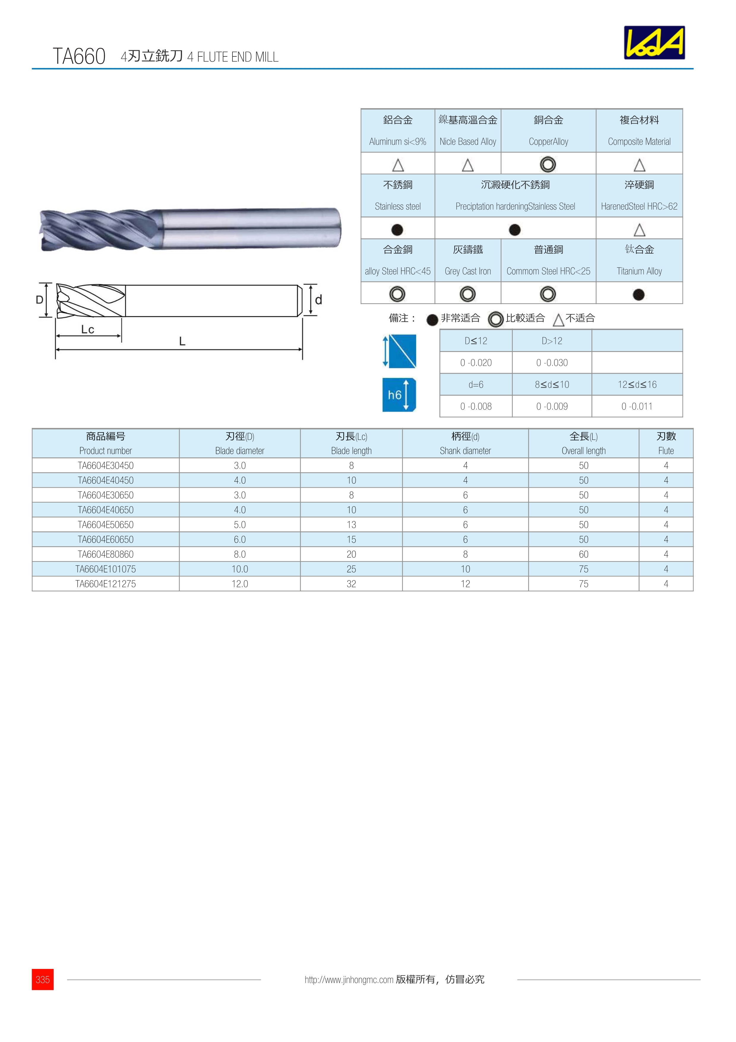 訂購:ta660-1 4刃立銑刀